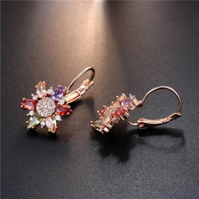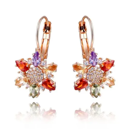 Серьги из бижутерного сплава с позолотой и вставками из фианитов. Замок типа левербэк.