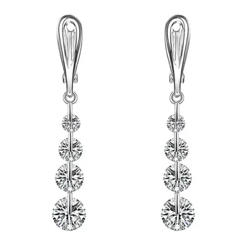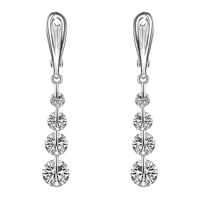 Серьги из бижутерного сплава с посеребрением и вставками из фианитов, замок типа левербэк.