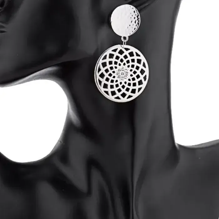 Серьги «Ловец снов» — бижутерное украшение с покрытием под серебро и вставками из страз.
