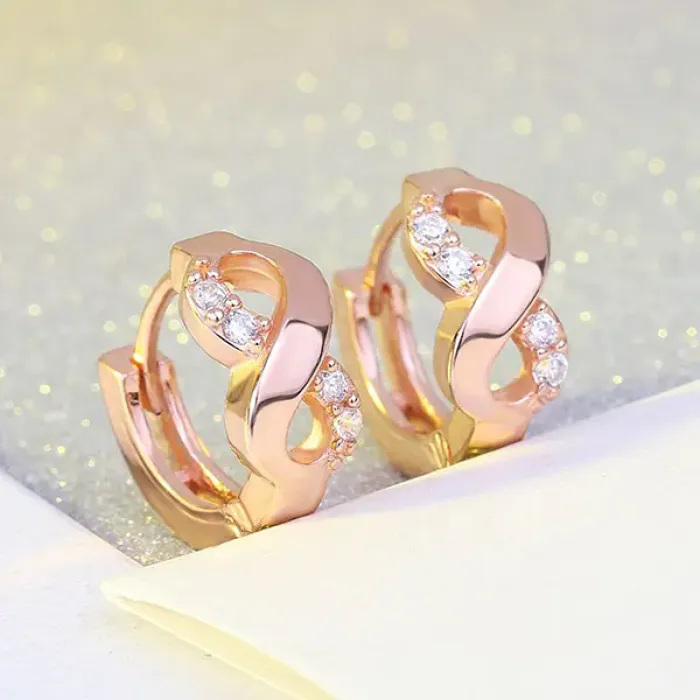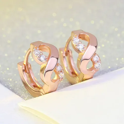 Серьги в форме бесконечности из бижутерного сплава с золотым покрытием.