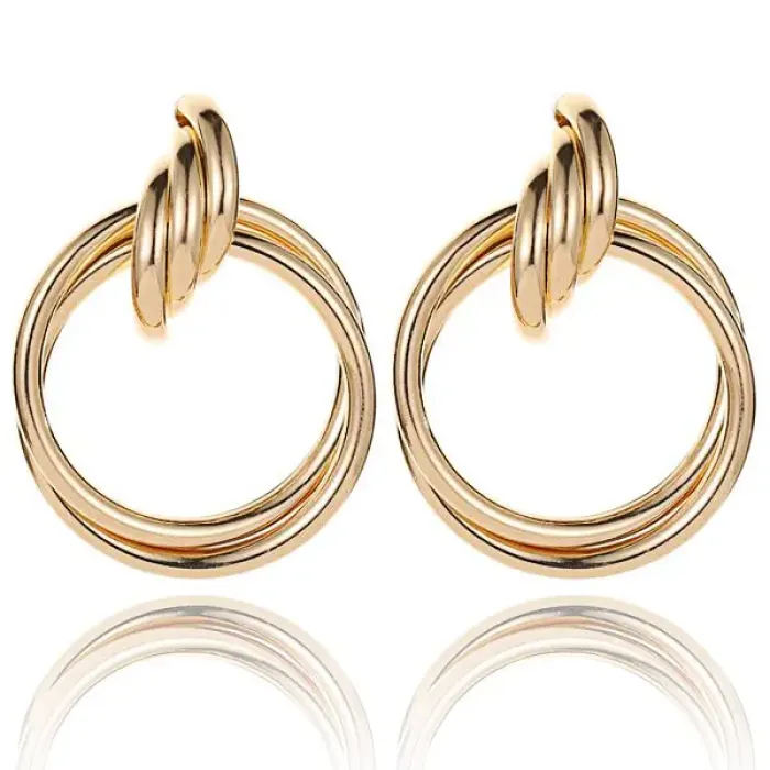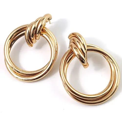Серьги из бижутерного сплава с золотым покрытием, тип замка — гвоздик (пусет).