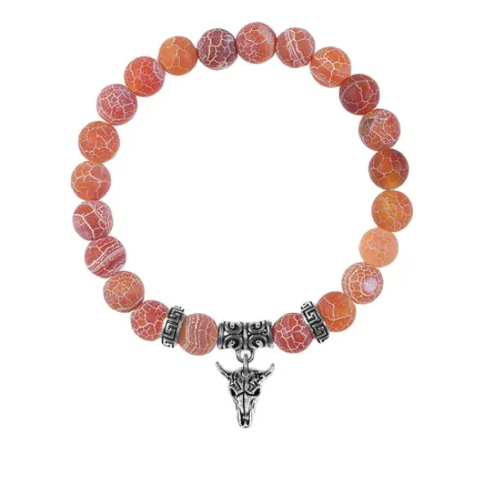 Браслет Череп быка (сила, мужество, защита), Африканский агат BSP-08-2076