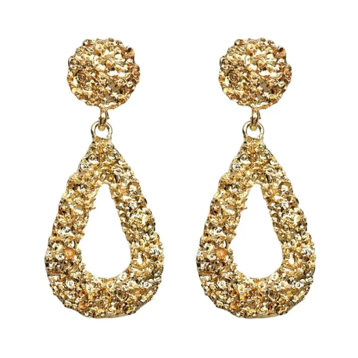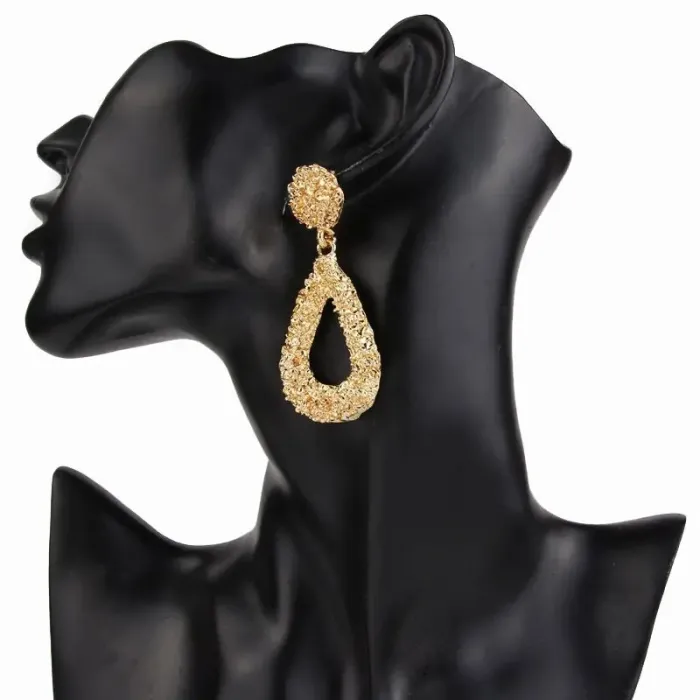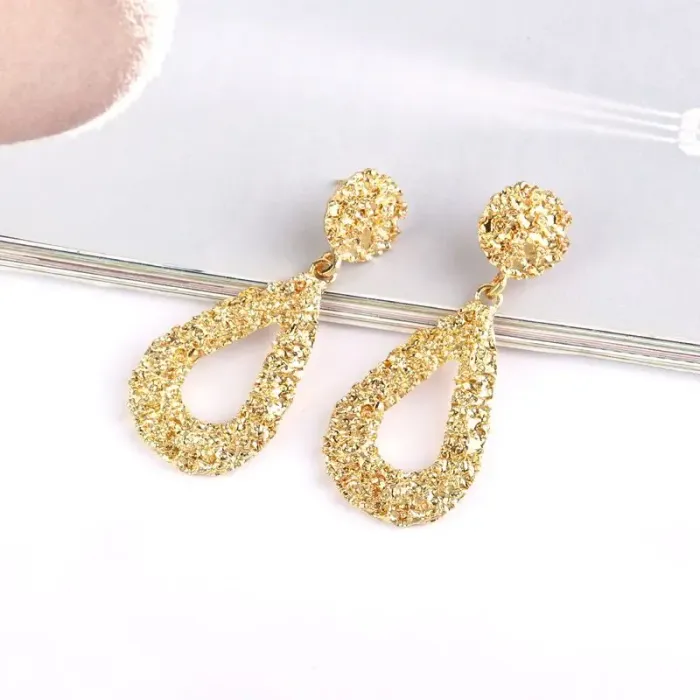 Серьги-гвоздики в форме капли из бижутерного сплава с золотым покрытием.