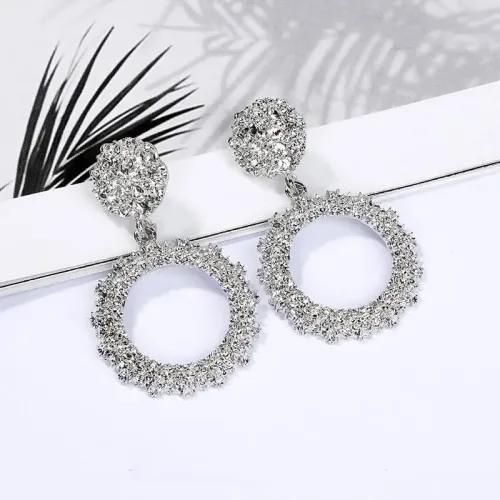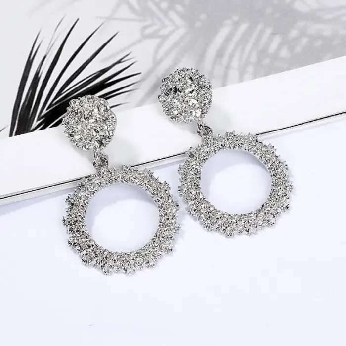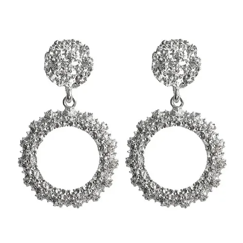Серьги круглой формы из бижутерного сплава с серебряным покрытием и замком-пусетом.