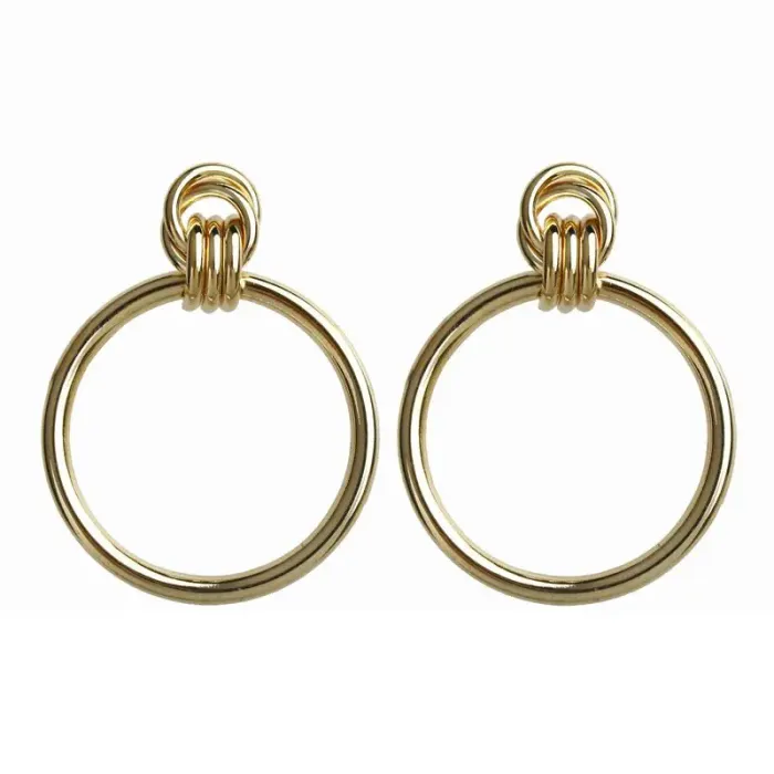 Серьги-кольцо в золотом цвете из бижутерного сплава с покрытием под золото. Тип замка — пусет (гвоздик).