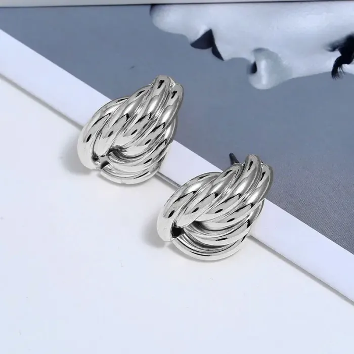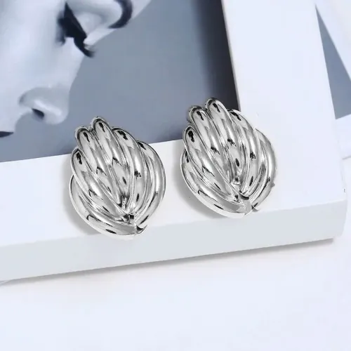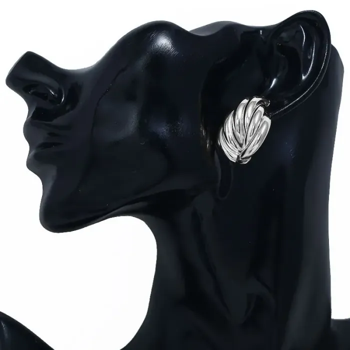 Серьги-пусеты «Волна» из бижутерного сплава с серебристым покрытием.