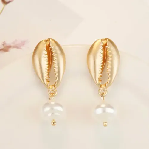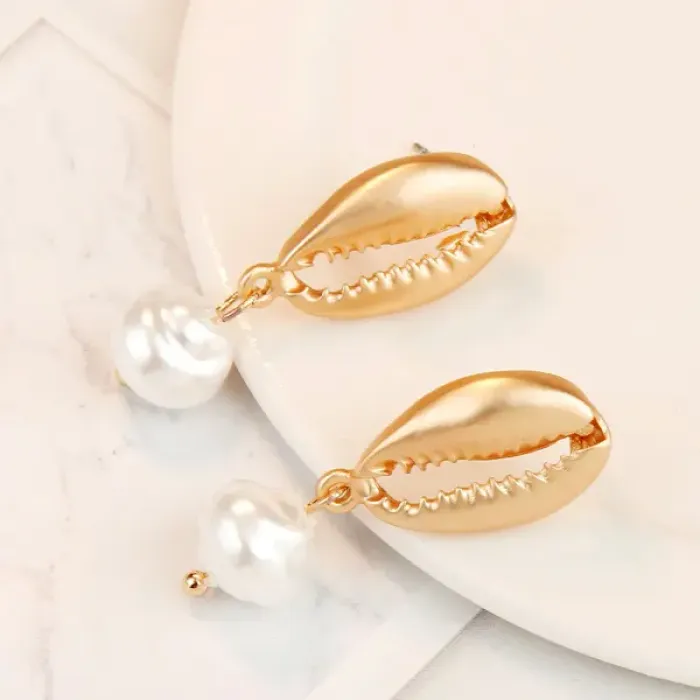 Серьги с искусственным барочным жемчугом на основе бижутерного сплава с покрытием под золото и замком-пусетой.