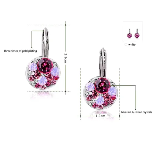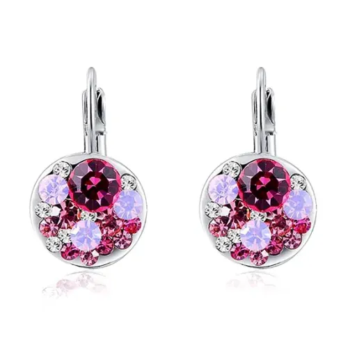 Серьги из бижутерного сплава с розовыми кристаллами фианита и замком типа левербэк.
