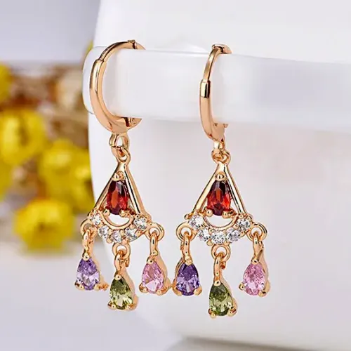 Серьги-люстра из бижутерного сплава с позолотой и вставками из фианитов.
