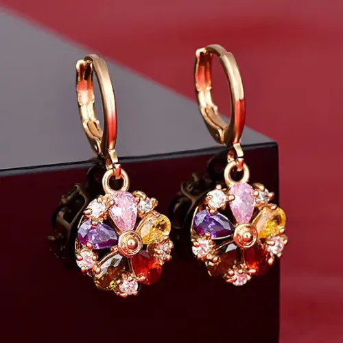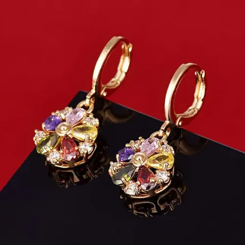 Серьги-сувенир из бижутерного сплава в форме цветка с позолотой и вставками из фианитов.