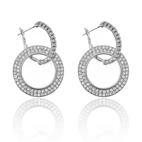 Серьги в форме кольца из бижутерного сплава с покрытием под серебро и стразами.
