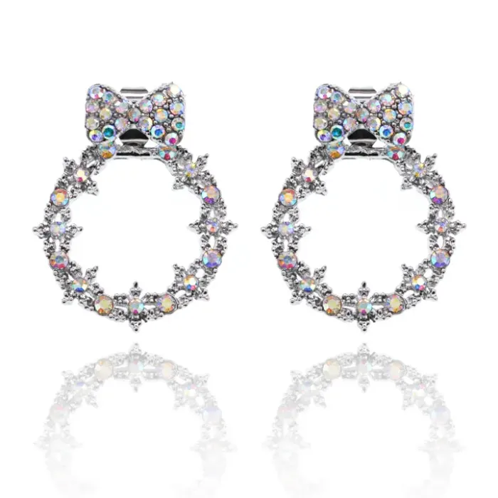 Серьги-кольцо из бижутерного сплава с декоративным бантом и стразами.