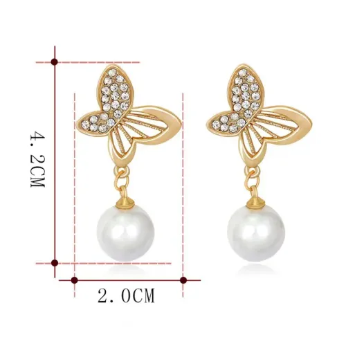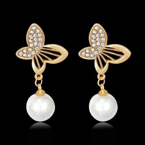 Серьги Бабочки с жемчужинами 35х9мм 1G0199