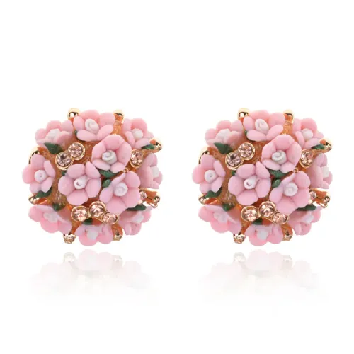 Серьги из бижутерного сплава с покрытием под золото и вставками из страз и керамики. Тип замка — пусет.