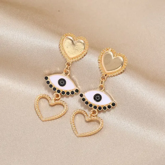 Серьги "Глаз и сердце" — это изысканное украшение, которое сочетает в себе символику любви и защиты. Изготовленные из бижутерного сплава с покрытием под золото и эмалью, они станут прекрасным дополнением к любому образу. Основные характеристики включают: