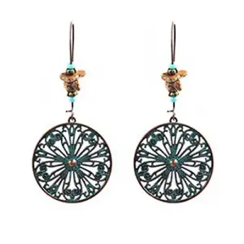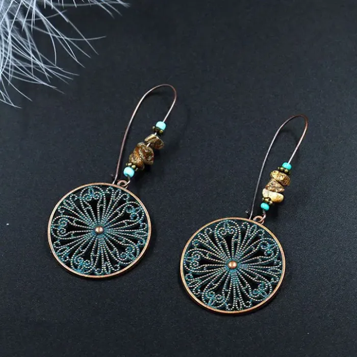 Серьги этнического дизайна с бусинами из бижутерного сплава и камней.