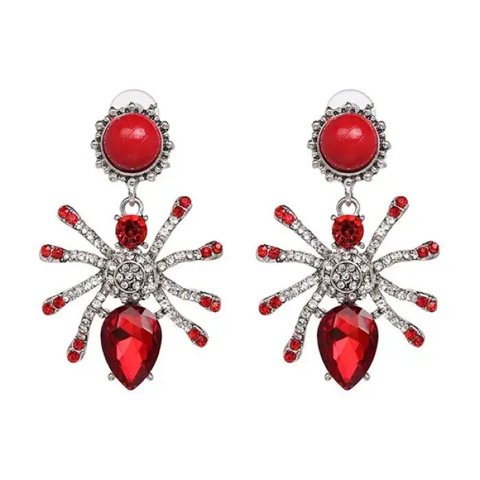 Серьги «Паук» — бижутерное украшение с вставками из синтетического коралла и кристаллами.