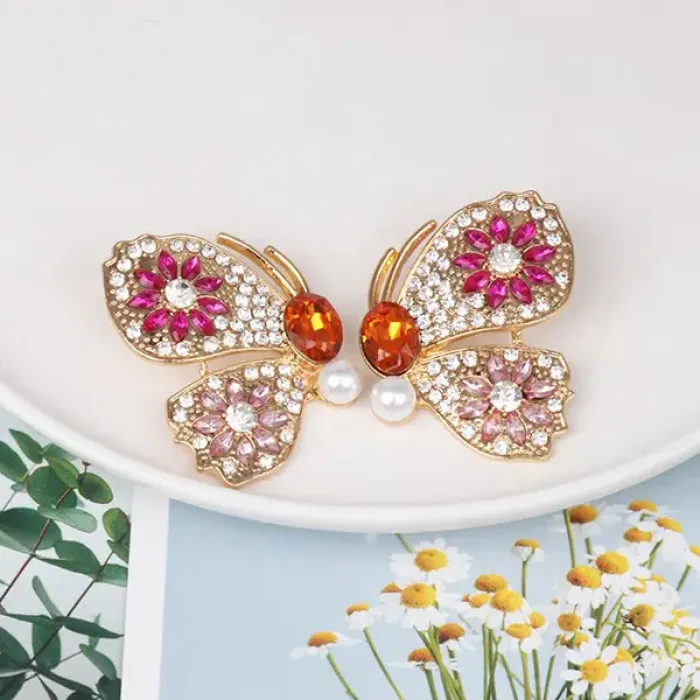 Серьги «Крылья бабочки» — бижутерный аксессуар из сплава с покрытием под золото, декорированный искусственным жемчугом, кристаллами и стразами.