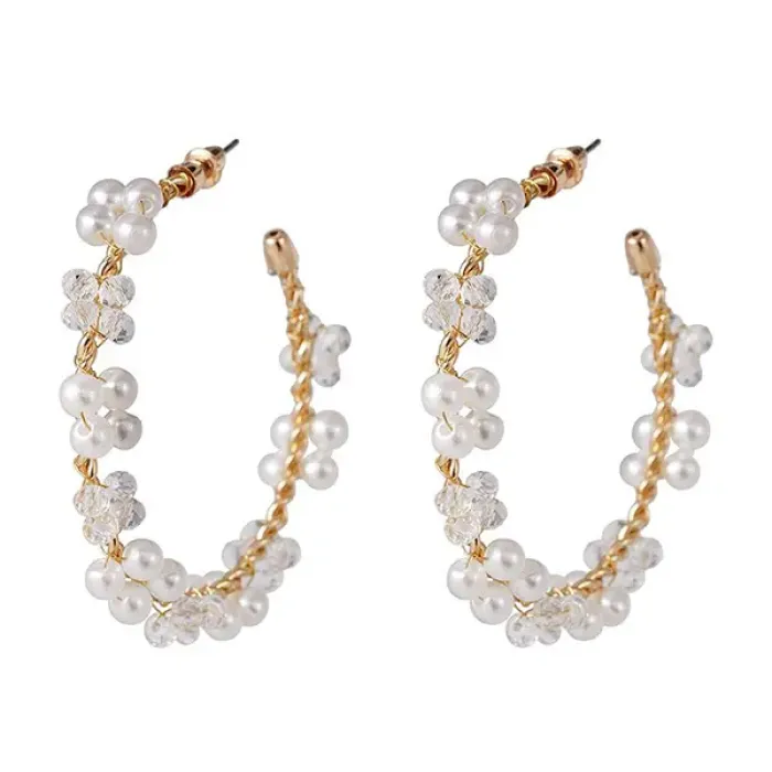 Материал и изготовление: Бижутерный сплав с покрытием под золото, искусственный жемчуг, стразы. Тип замка — пусет (гвоздик).