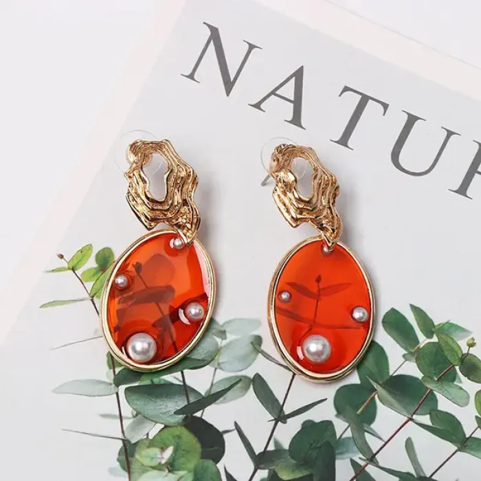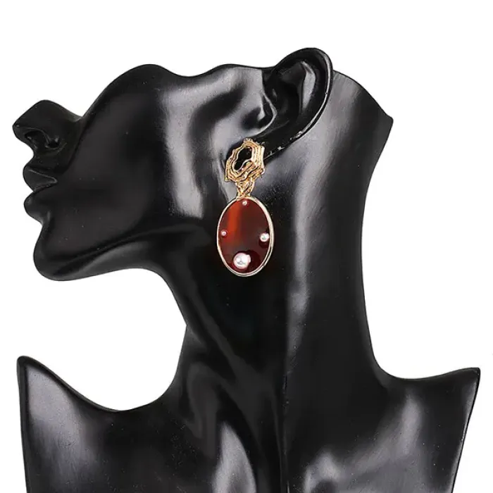 Серьги из бижутерного сплава с искусственным жемчугом и стеклянными вставками в форме овала.