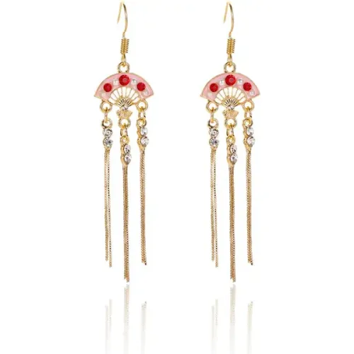 Серьги-сувенир из бижутерного сплава в форме веера с покрытием под золото и эмалью.