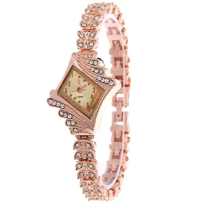 Наручные часы с декоративными стразами, корпус и браслет с золотым покрытием.