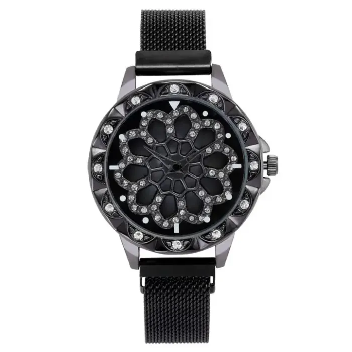 Наручные часы с вращающимся циферблатом из нержавеющей стали со вставками из страз.