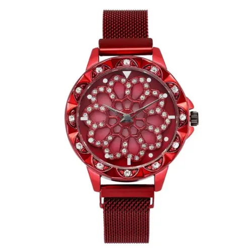 Наручные часы с вращающимся циферблатом красного цвета из нержавеющей стали.