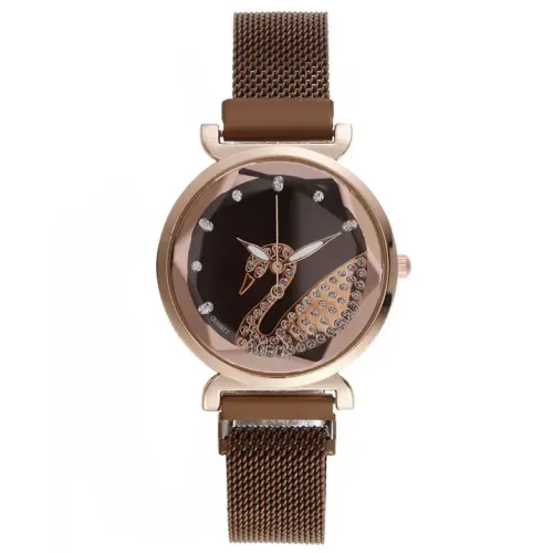 Часы Лебедь со стразами, цвет коричневый 1H0007-1