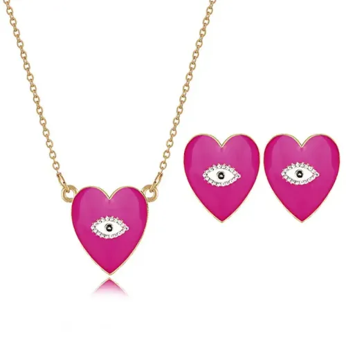 Этот набор из кулона и серёг в форме сердца с яркой малиновой эмалью станет прекрасным украшением для любого случая. Изготовленный из бижутерного сплава и покрытый под золото, он сочетает в себе элегантность и современный стиль. Основные характеристики: