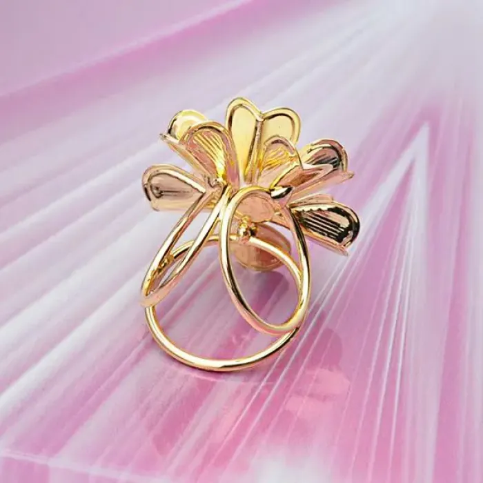 Зажим для платка в виде цветка. Материал — бижутерный сплав с покрытием под золото и эмалью, с вставками из искусственного жемчуга.