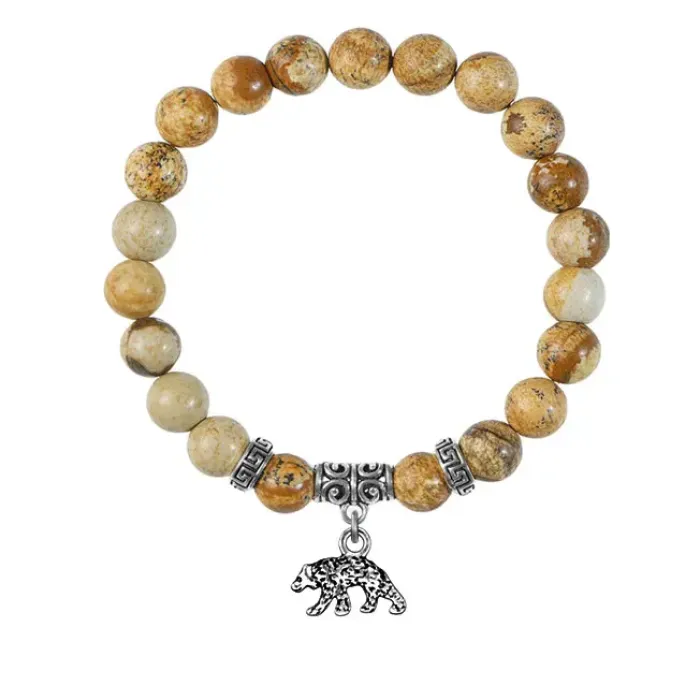 Браслет-амулет из натуральной песочной яшмы с подвеской в виде медведя.
