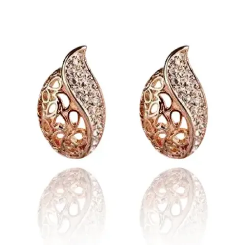 Серьги-пусеты из бижутерного сплава в форме капли с инкрустацией стразами и золотым покрытием.