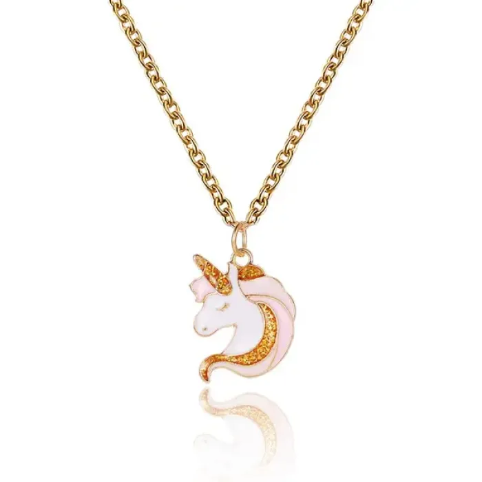 Кулон в виде единорога из бижутерного сплава с регулируемой цепочкой.