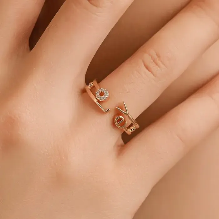 Безразмерное кольцо LOVE со стразами, 7мм 1L0069