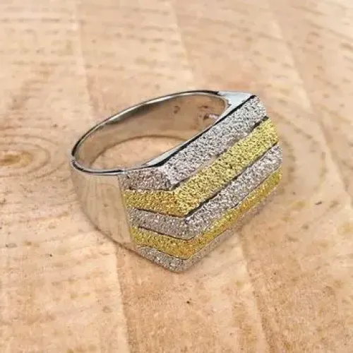 Бижутерное кольцо серебряно-золотого цвета.