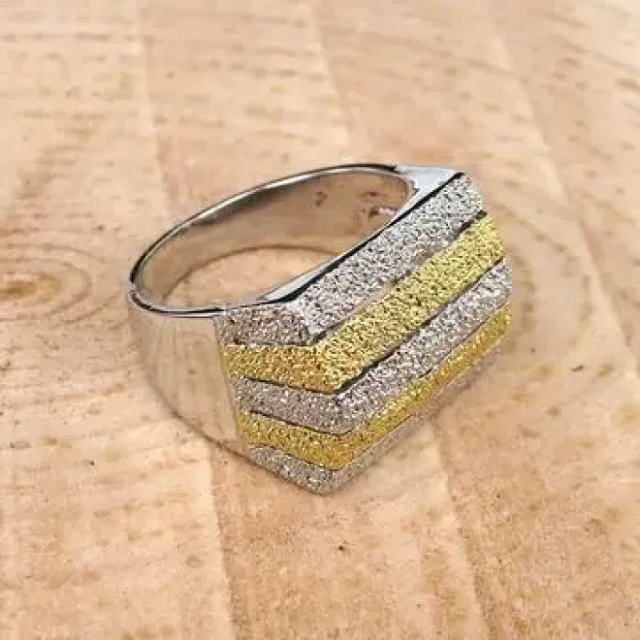 Кольцо из бижутерного сплава в серебряно-золотом цвете.