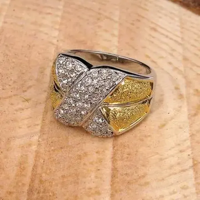 Кольцо из бижутерного сплава со стразами Сваровски в серебряно-золотом цвете.