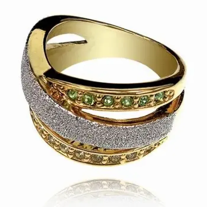 Бижутерное кольцо со стразами Сваровски серебряно-золотого цвета.