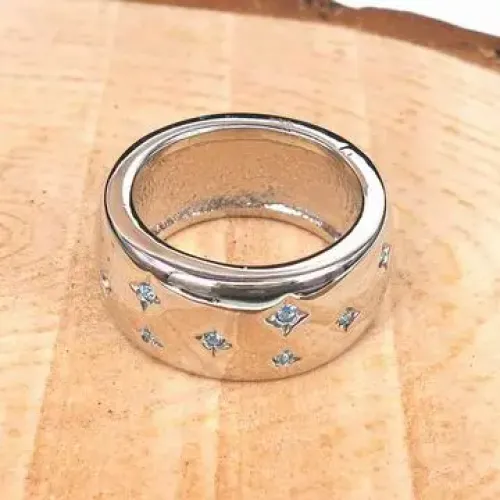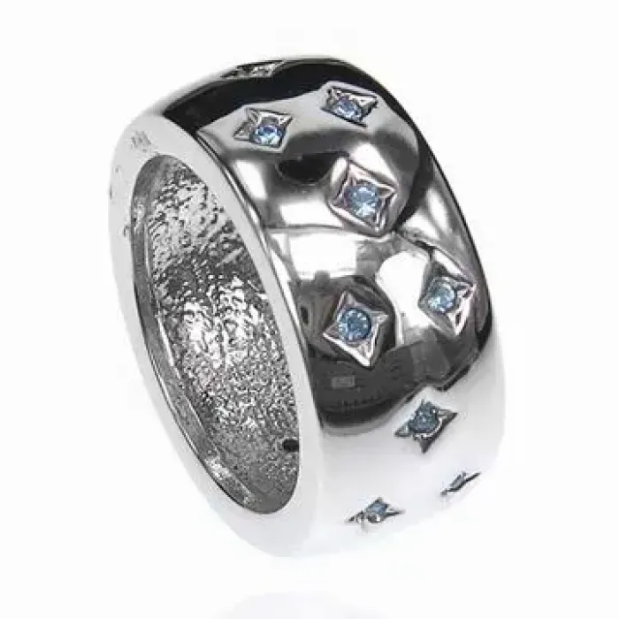 Кольцо из бижутерного сплава серебряного цвета со стразами Сваровски.