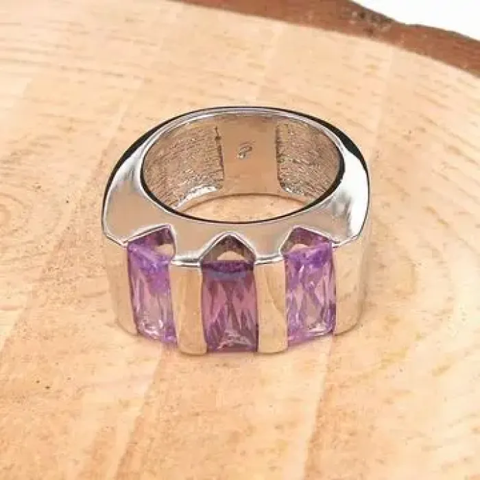 Кольцо с фианитами из бижутерного сплава серебристого цвета.