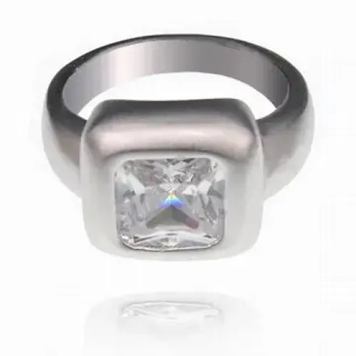 Кольцо с фианитом из бижутерного сплава серебристого цвета.