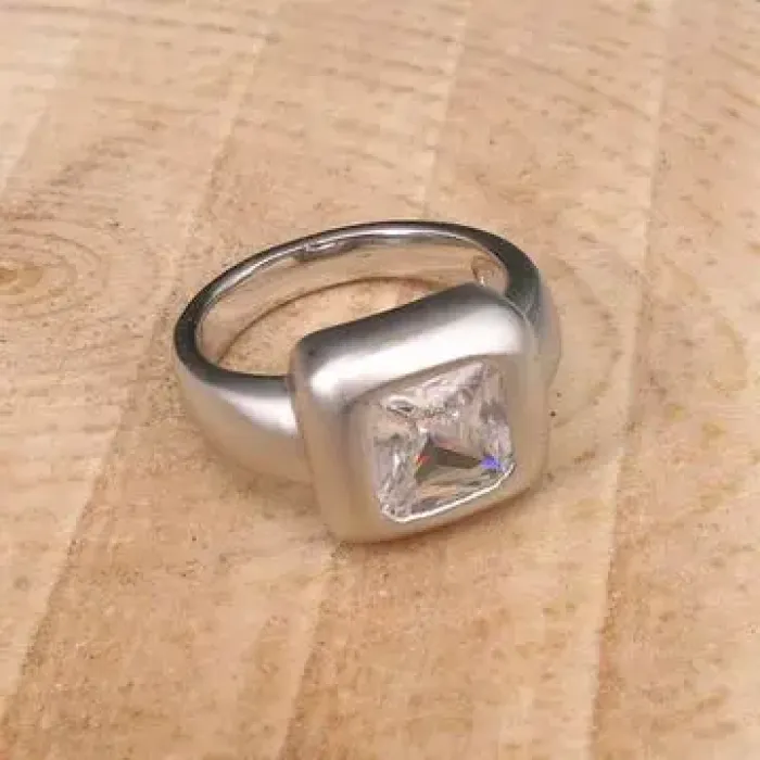 Кольцо с фианитом из бижутерного сплава серебристого цвета.