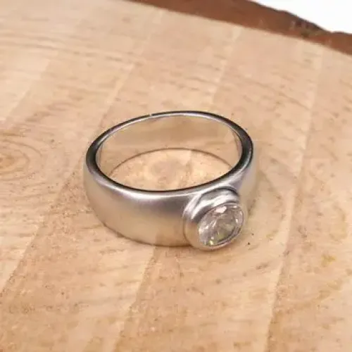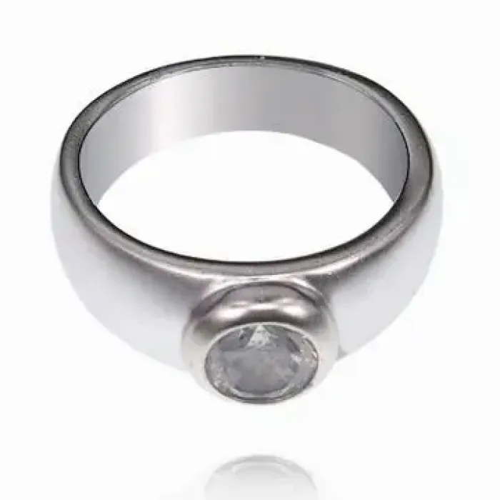 Кольцо с фианитом из бижутерного сплава серебристого цвета.