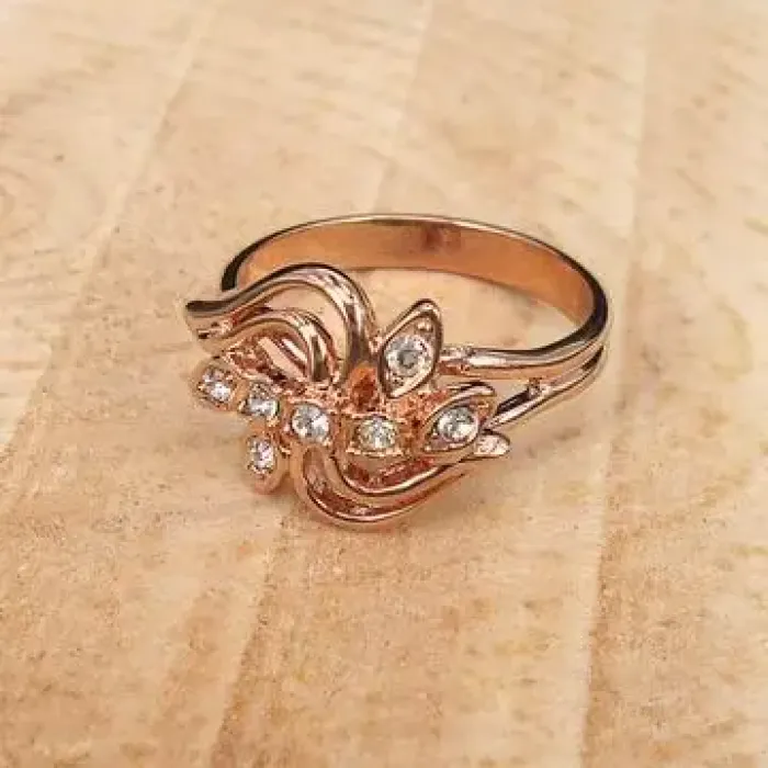 Кольцо из бижутерного сплава со стразами Сваровски и покрытием розовым золотом.