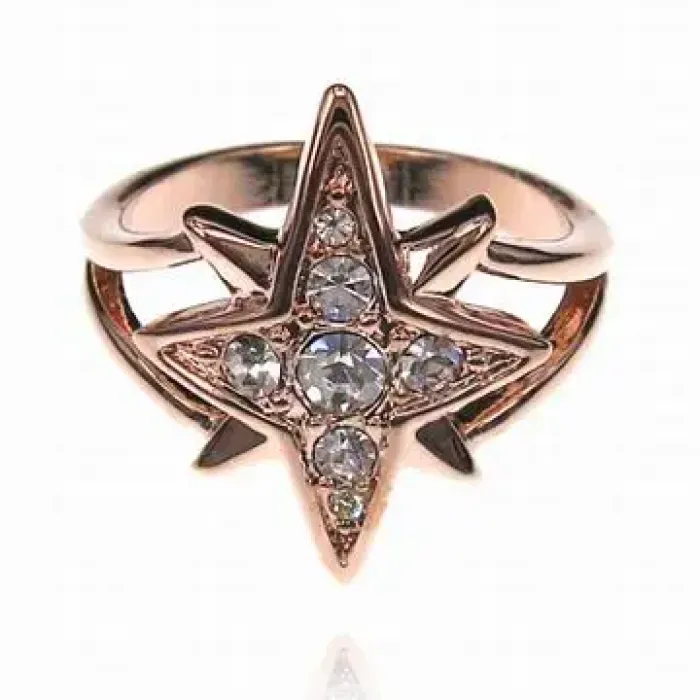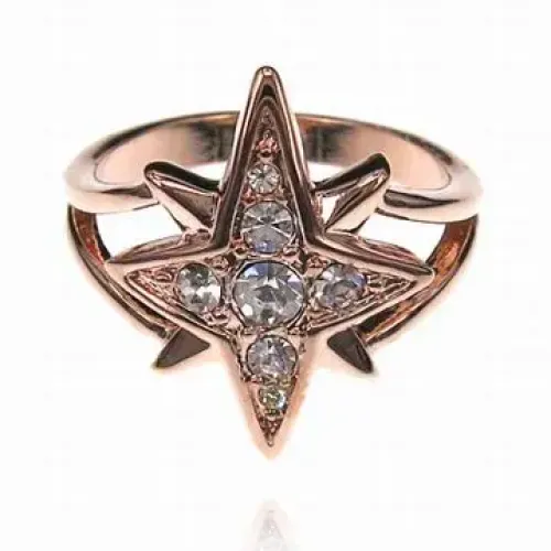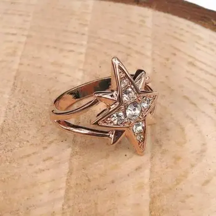 Кольцо из бижутерного сплава с дизайном в виде звезды и вставками стразов.