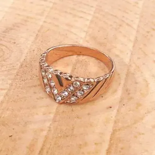 Бижутерное кольцо со стразами Сваровски и покрытием розовым золотом. Размер 19.