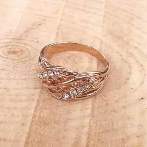 Кольцо из бижутерного сплава со стразами Сваровски и покрытием розового золота.