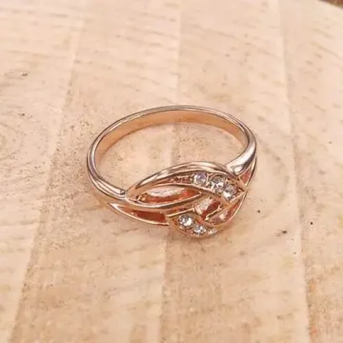 Кольцо из бижутерного сплава с покрытием розовым золотом и вставками стразов Сваровски.