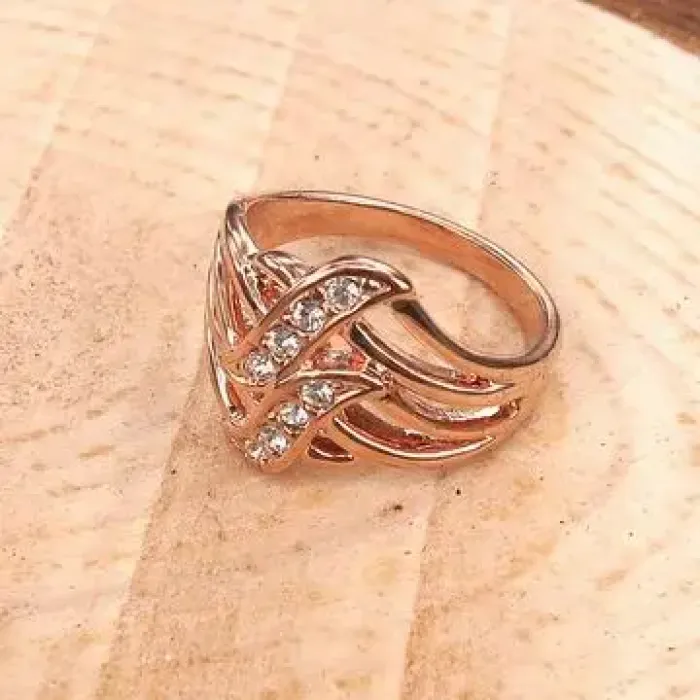 Кольцо со стразами Сваровски, бижутерный сплав с покрытием розовым золотом.
